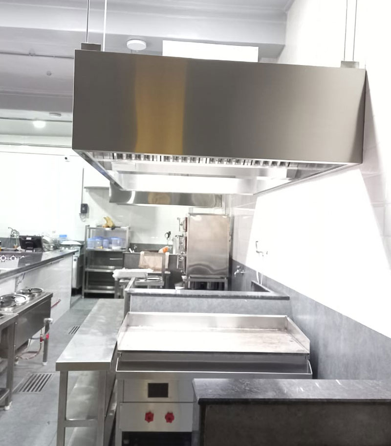 Matching the appropriate size of the air duct and enough horsepower of the fan, you can well deal with the problem of oil smoke, will not make the kitchen full of oil smoke. If you have special requirements for environmental protection and exhaust gas treatment, we can match the appropriate oil smoke filtration equipment.
