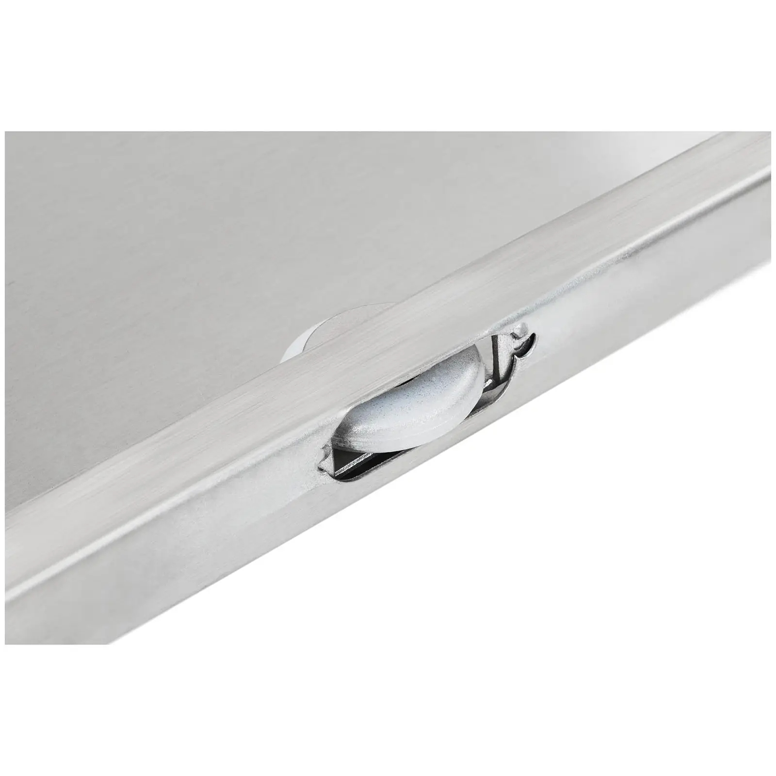Two practical sliding doors mean that the unit can also be used in small kitchens. The utensils are stored securely and hygienically behind two sliding doors. The sliding door can be easily opened and closed. The structure has a reinforced ground base.