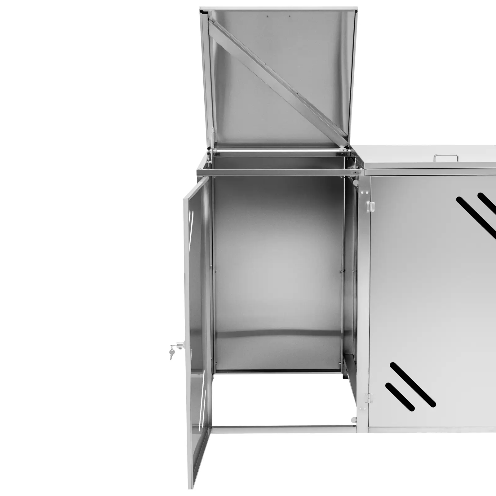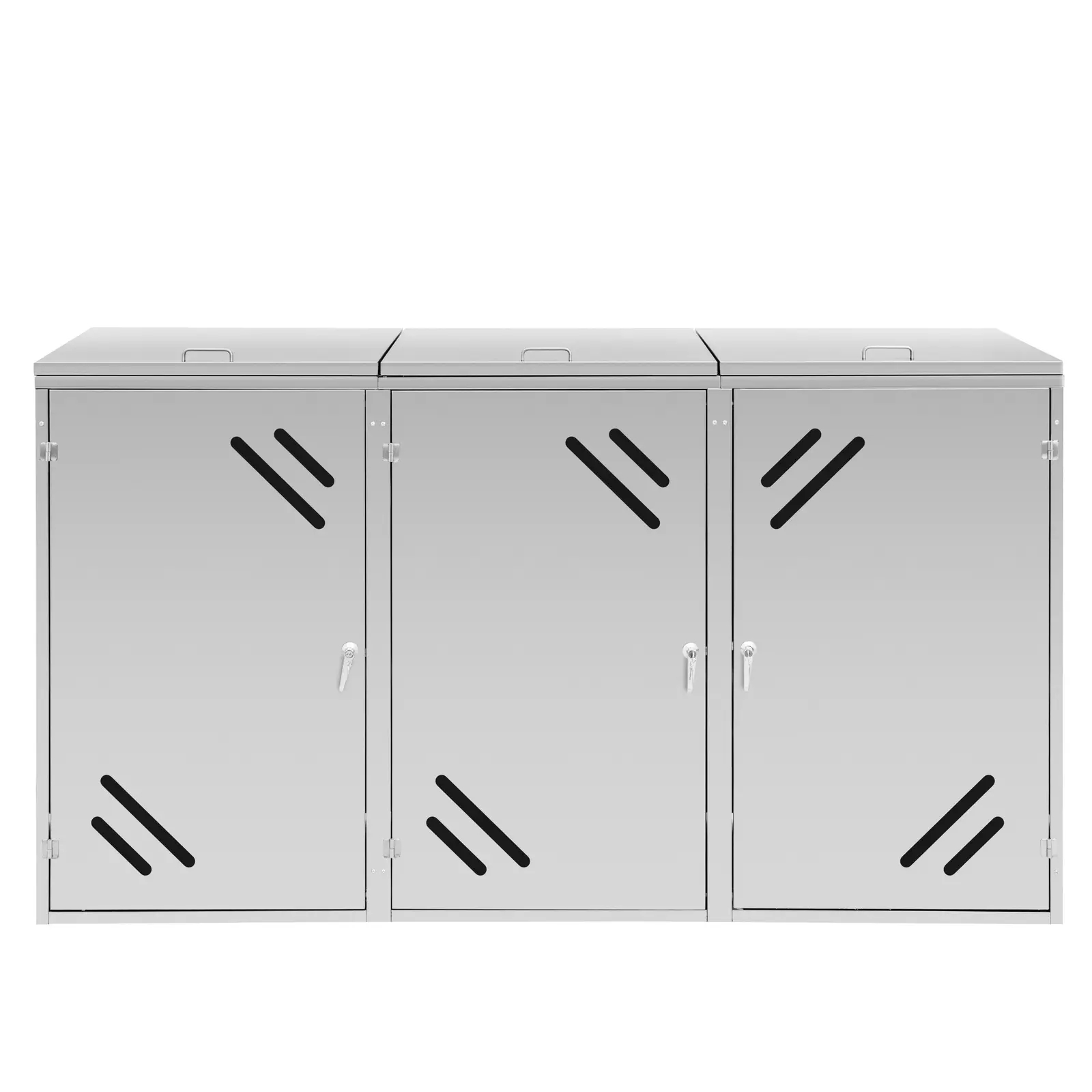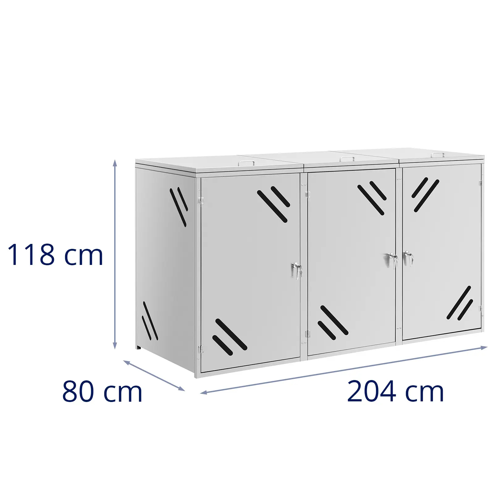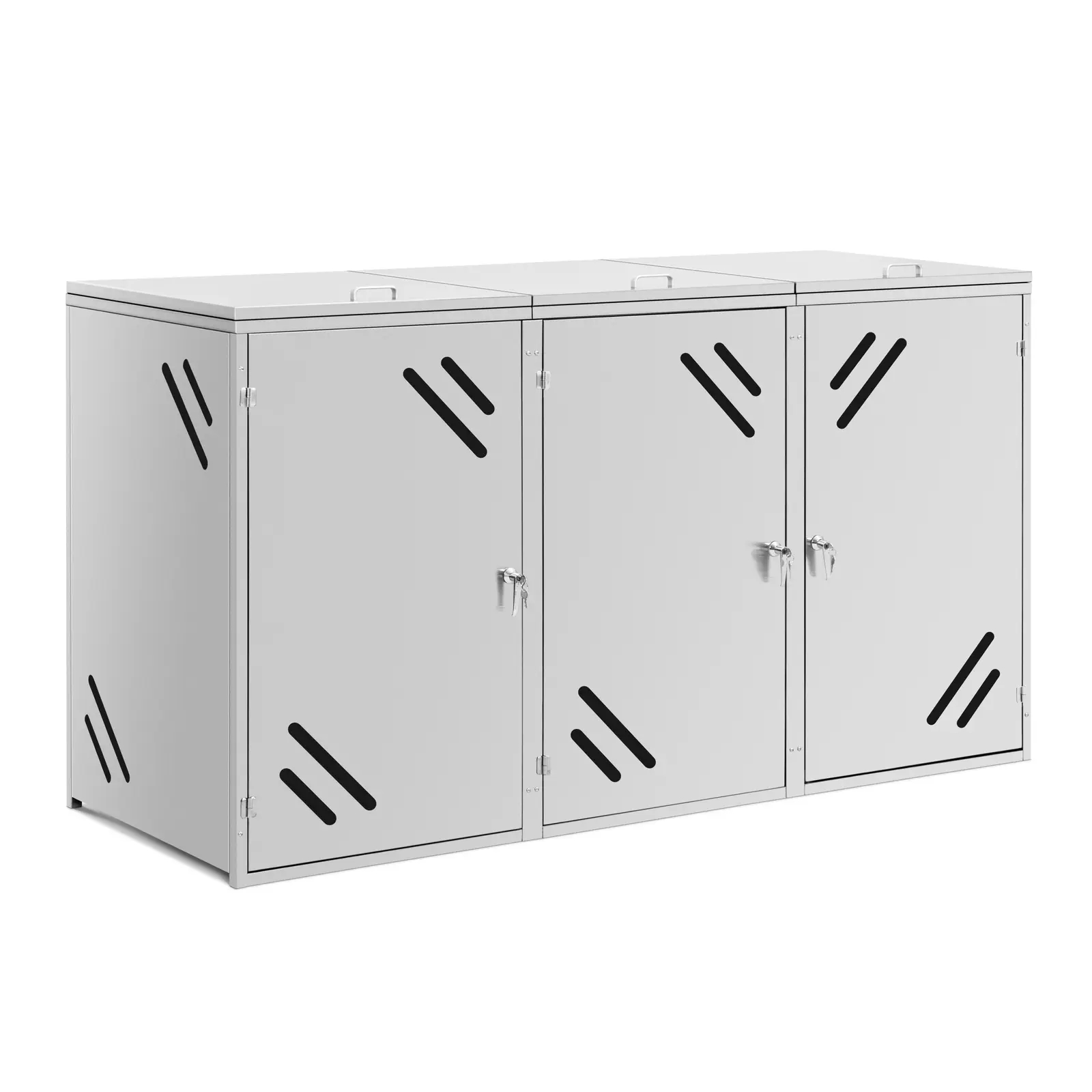 The practical dustbin cover is both functionally and visually the perfect solution for concealing 3 dustbins with a capacity of up to 240 L each and providing effortless access to your bins needed. Whether it's at the edge of the garden, by the garage, or in the courtyard of a building complex, the rubbish bin store offers a perfect spot to securely and discreetly stash your waste containers. Furthermore, the weather-resistant material is exceptionally low-maintenance, making it easy for you to keep the garbage area in a hygienic condition. This is facilitated by the air slits, which ensure optimal internal ventilation. Whether you choose to store organic waste bins, bottle storage, general waste, or paper recyclables within is entirely up to you.
