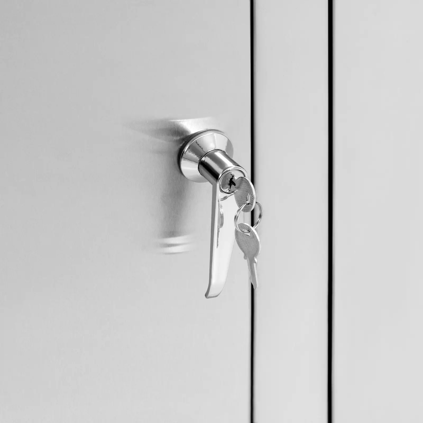The garbage bin enclosure has a compartment for each bin, which you can lock with a door lock. By doing so, you prevent wild animals from accessing the contents or unauthorised individuals from depositing waste in your bin. The doors open and close effortlessly. Each box is fitted with a lid that is held open by a gas pressure spring. This makes it much easier for you to access the waste bin, as you don't have to pull it out and push it back in every time you need to fill it.
